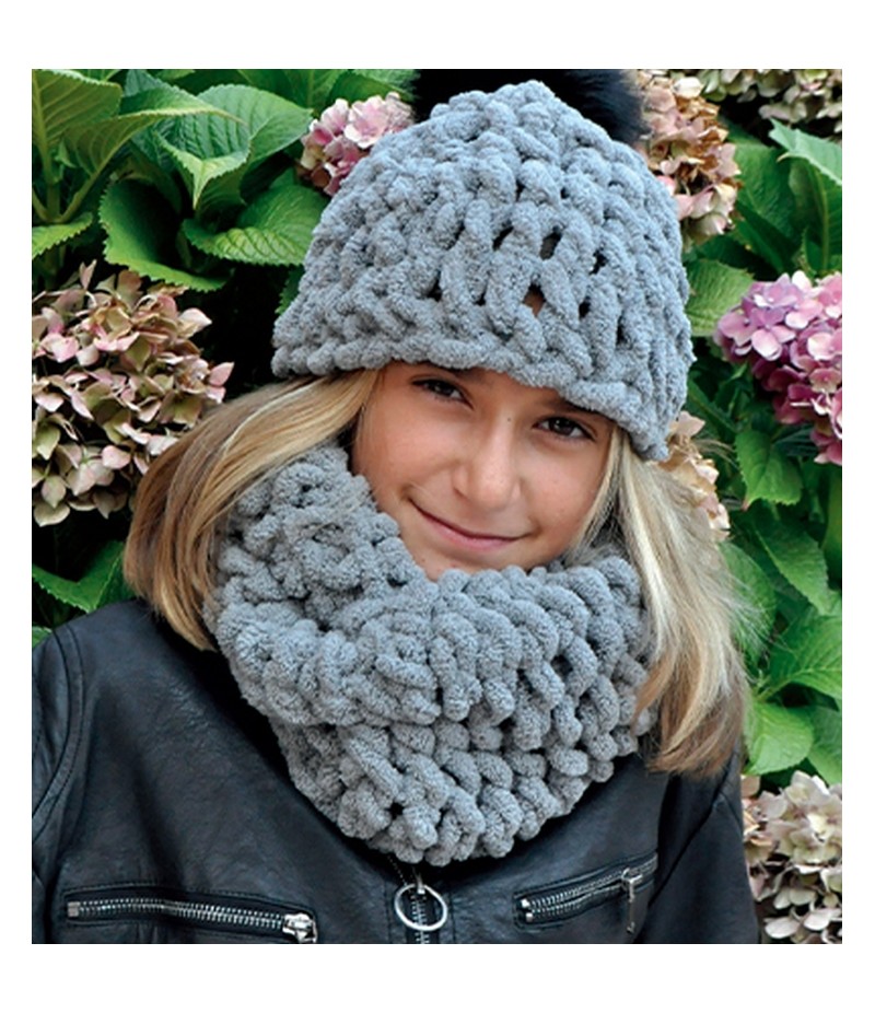 Cette laine se tricote avec les doigts. Idéal pour réaliser des accessoires (couverture, écharpe...).