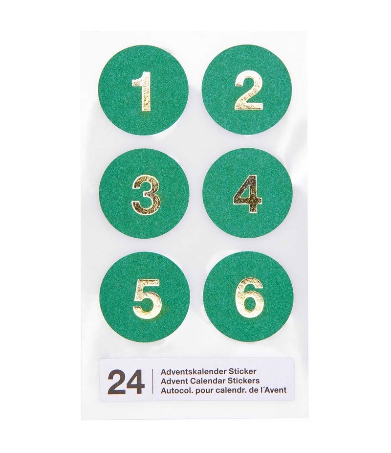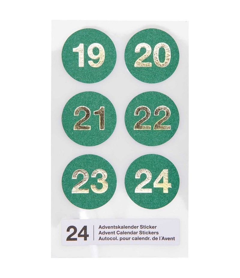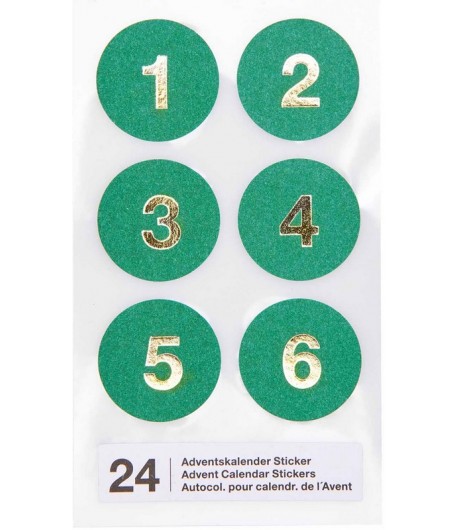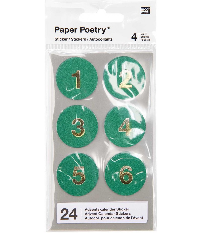 4 planches de 24 autocollants ronds avec chiffres pour décorer vos calendriers de l'avent. RICO DESIGN - 300133