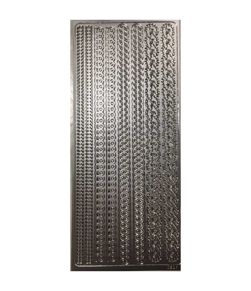 Les stickers peel off or ou argent (certains existent également en d'autres couleurs) sont très pratiques pour la décoration de cartes créatives, d'albums photos, de bijoux ou d'objets déco de toute nature (bois, verre, plastique, etc...)