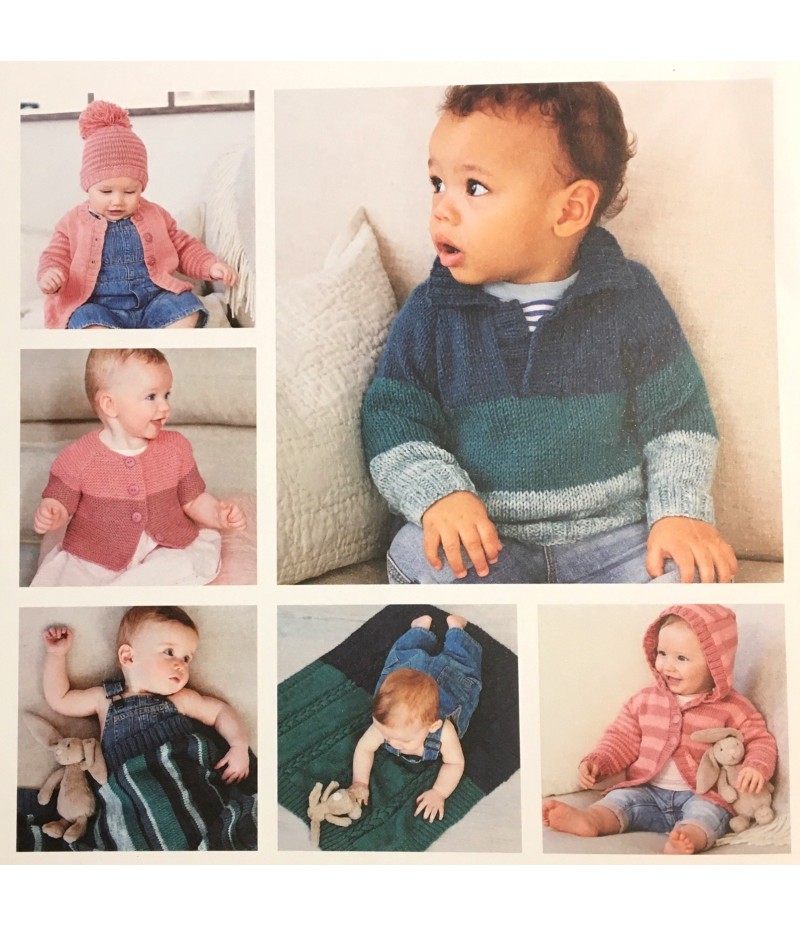 19 modèles à tricoter pour l'hiver pour bébé (gilets, pull, bonnet, couverture, chaussettes...).