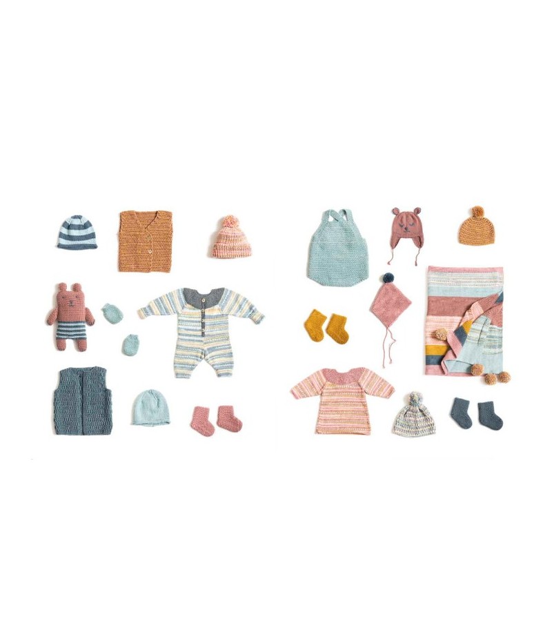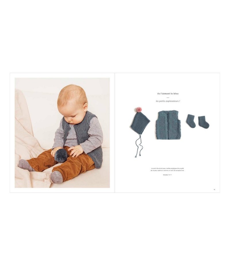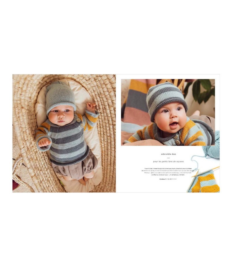 23 modèles à tricoter pour bébés et enfants de 0 à 2 ans (gilets, pull, bonnet, couverture, robe, accessoires, chaussettes...).