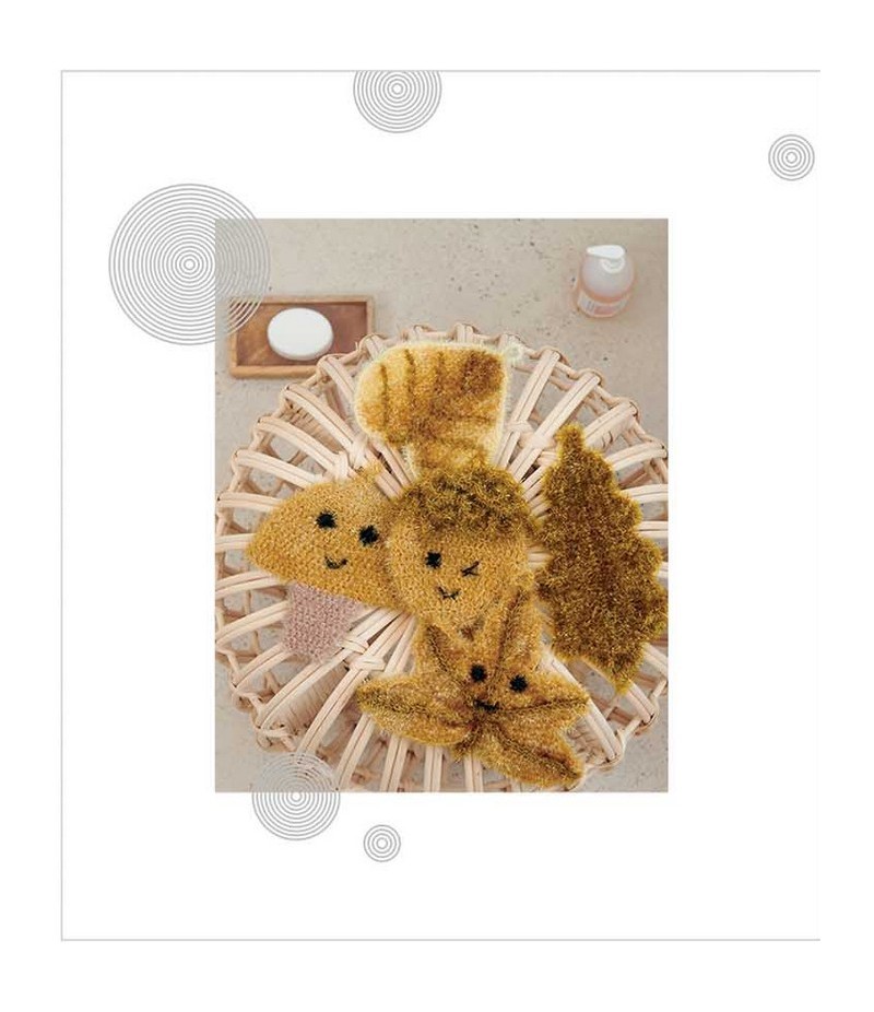 Dans ce livret, vous trouverez toutes les explications pour réaliser au crochet des éponges à vaisselle amusantes grâce au fil Creative Bubble.