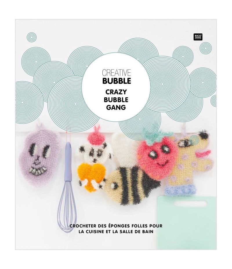 Dans ce livret, vous trouverez toutes les explications pour réaliser au crochet des éponges à vaisselle amusantes et autres accessoires grâce au fil Creative Bubble.