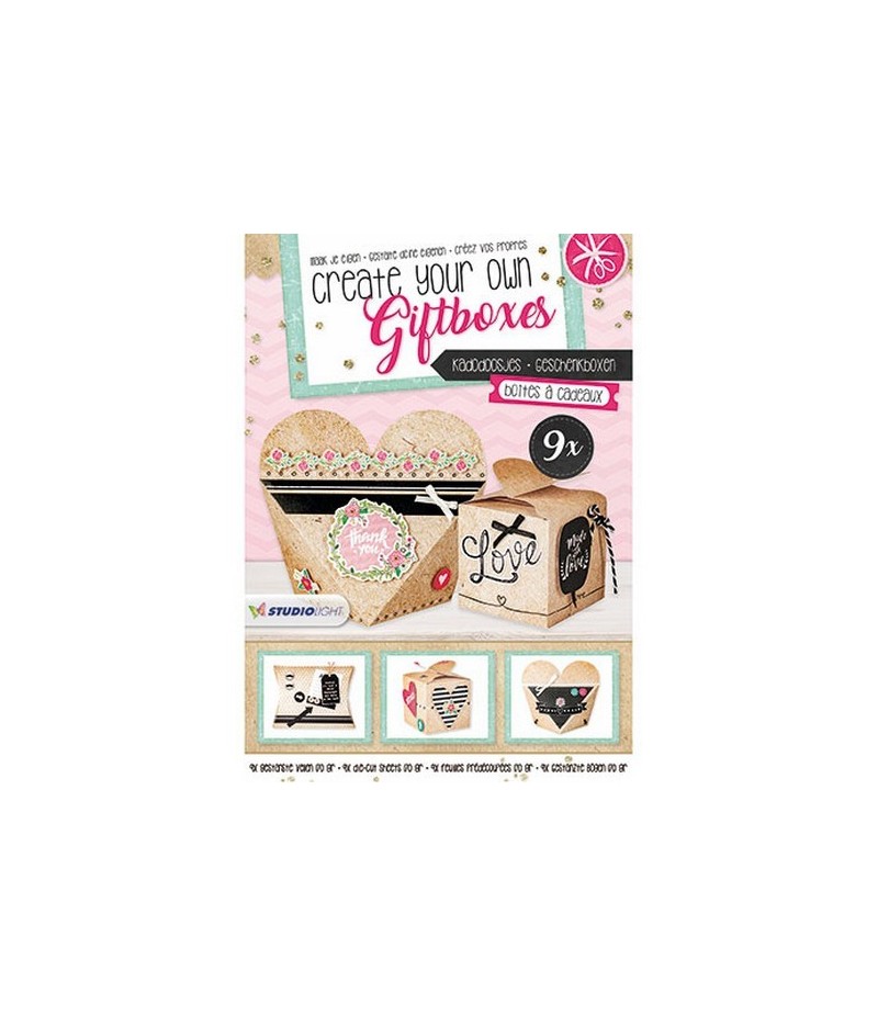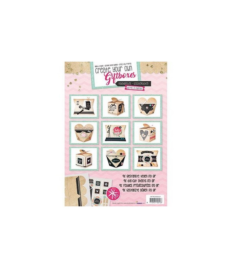 Bloc de 12 pages prédécoupées pour réaliser 9 boites ou pochettes avec décos prédécoupées.