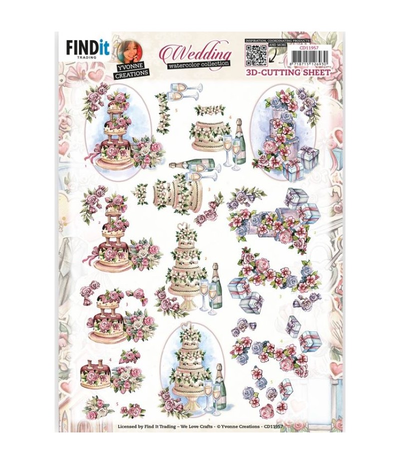 Feuille de découpage en 3D étape par étape pour réaliser de jolies cartes. WEDDING TIME - CD11957