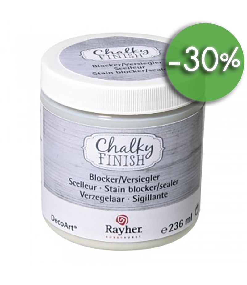Ce produit scellant et inhibiteur de taches, à base d'eau, est idéal pour préparer des surfaces en bois usées, Il prépare la surface en bois pour la nouvelle couche de peinture et protège la nouvelle couche de peinture. Bien laisser sécher la couche de peinture (5-7 jours) avant d'appliquer le Chalky Finish. Devient transparent en séchant.