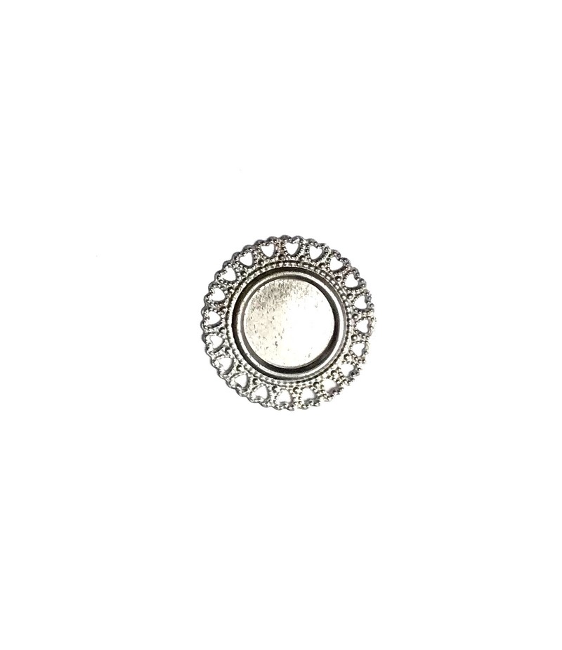 Diamètre extérieur : environ 3.5 cm. Diamètre du rond intérieur : environ 1.8 cm.