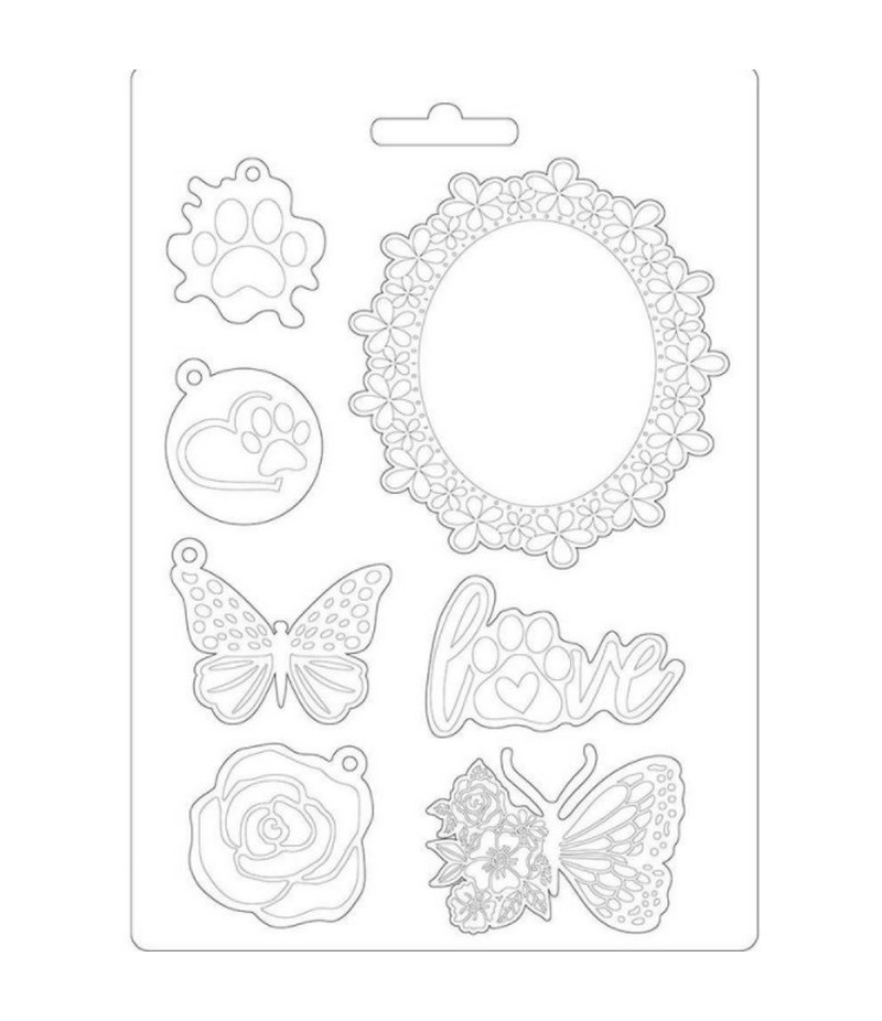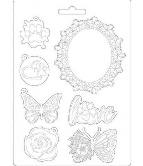 Ces moules flexibles en plastique ont été conçus pour créer des effets 3D avec des pâtes structurantes telle que la pâte crème K3P53. Etalez cette pâte avec une spatule sur votre moule et après 24 heures vous obtiendrez une "feuille" flexible et souple prête a être utilisé sur vos créations Mixed Média. Collection CIRCLE OF LOVE de Stampéria - K3PTA572