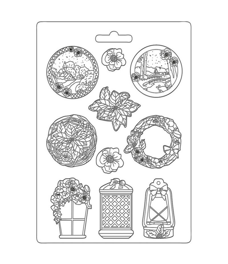 Moule en plastique souple pour moulage à froid. Idéal pour la poudre céramique, le savon, le plâtre. Collection WINTER TALES de STAMPERIA - K3PTA4514.