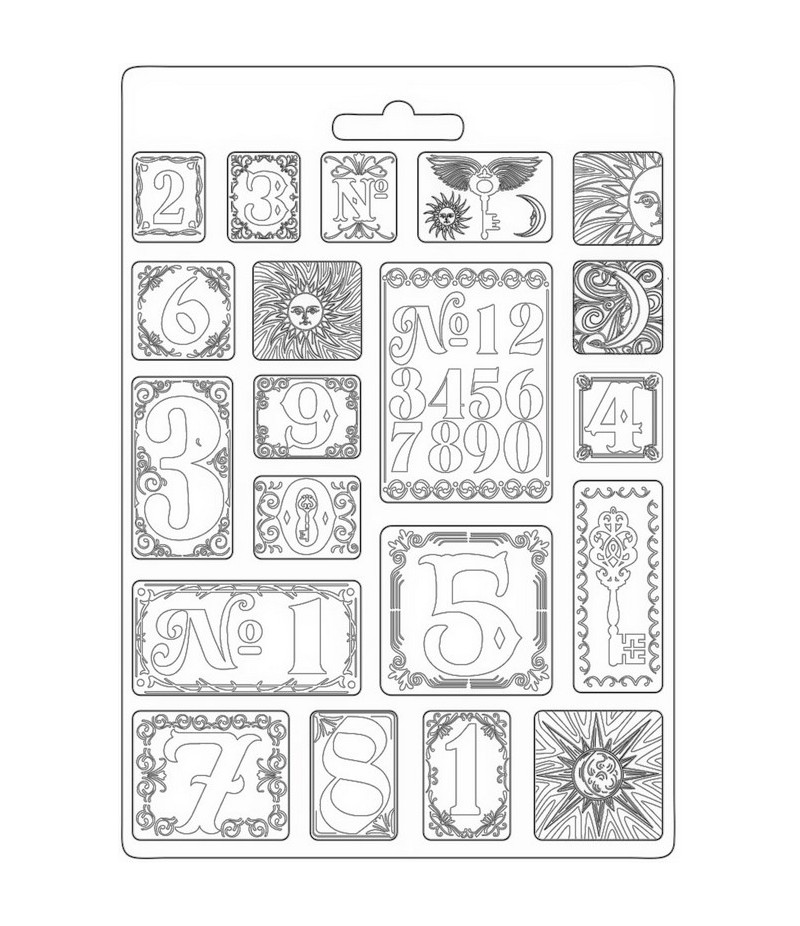 Moule en plastique souple pour moulage à froid. Idéal pour la poudre céramique, le savon, le plâtre. Collection ALCHEMY de STAMPERIA - K3PTA4524.