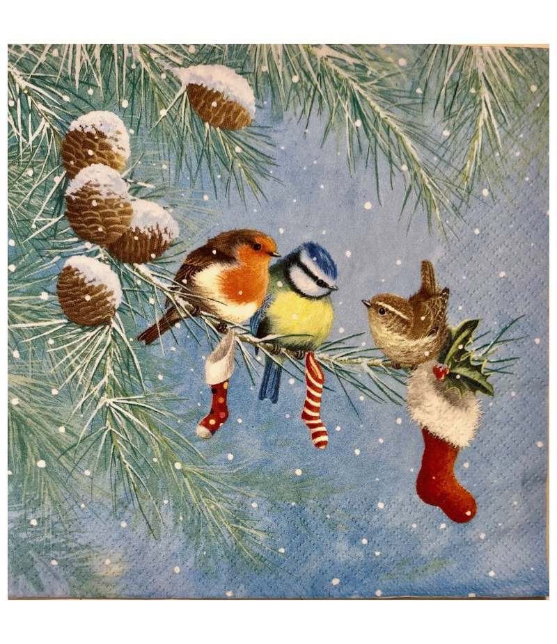 SERVIETTE OISEAUX SOUS LA NEIGE