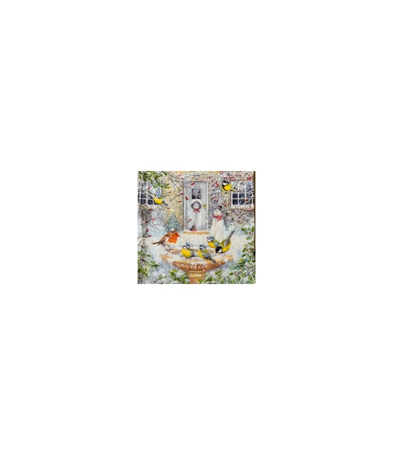 SERVIETTE OISEAUX ET BONHOMME DE NEIGE