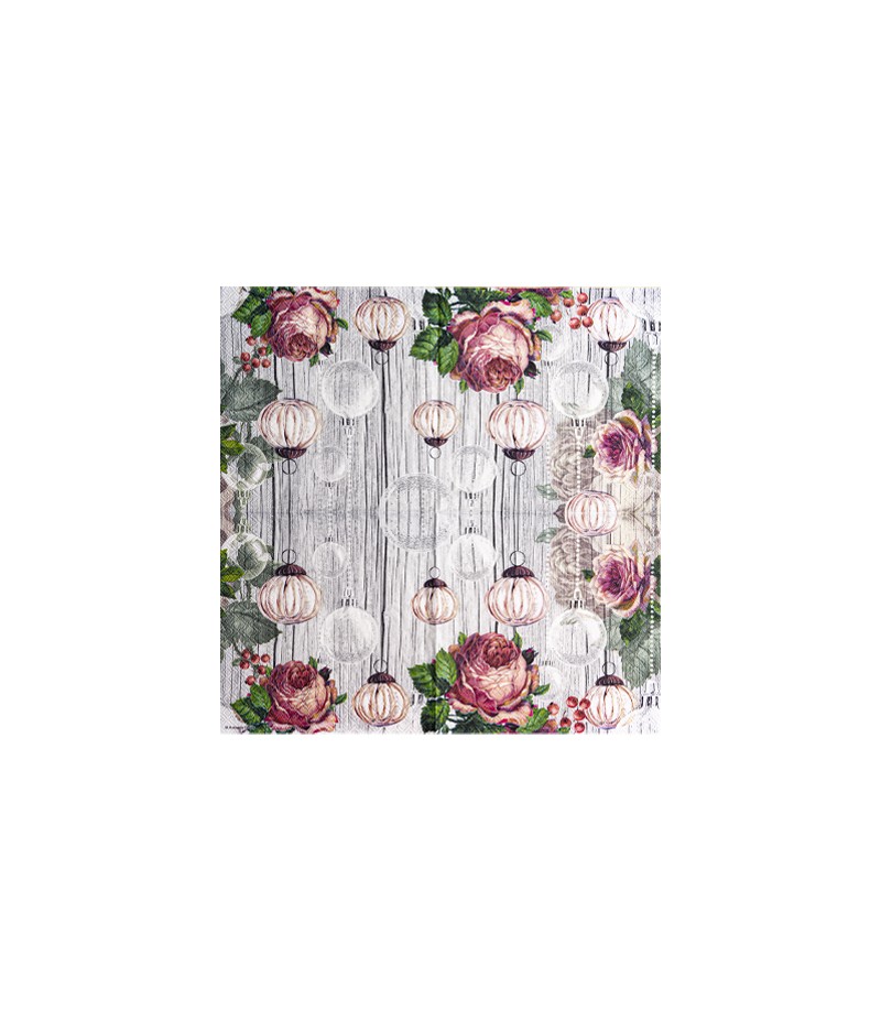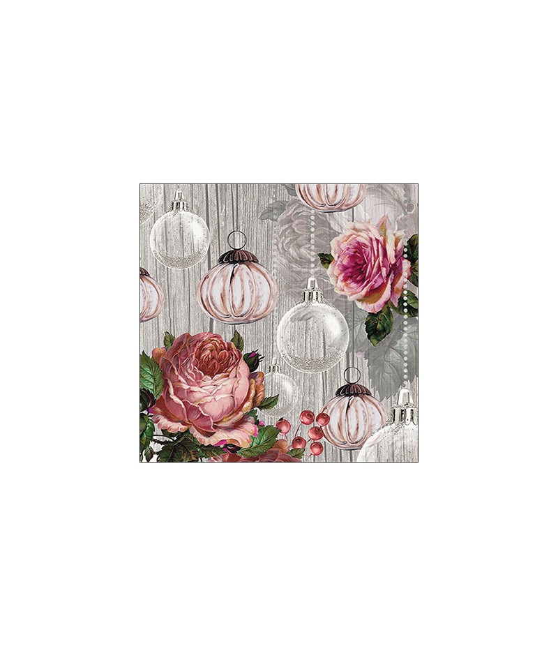 SERVIETTE ROSE ET BOULE DE NOEL