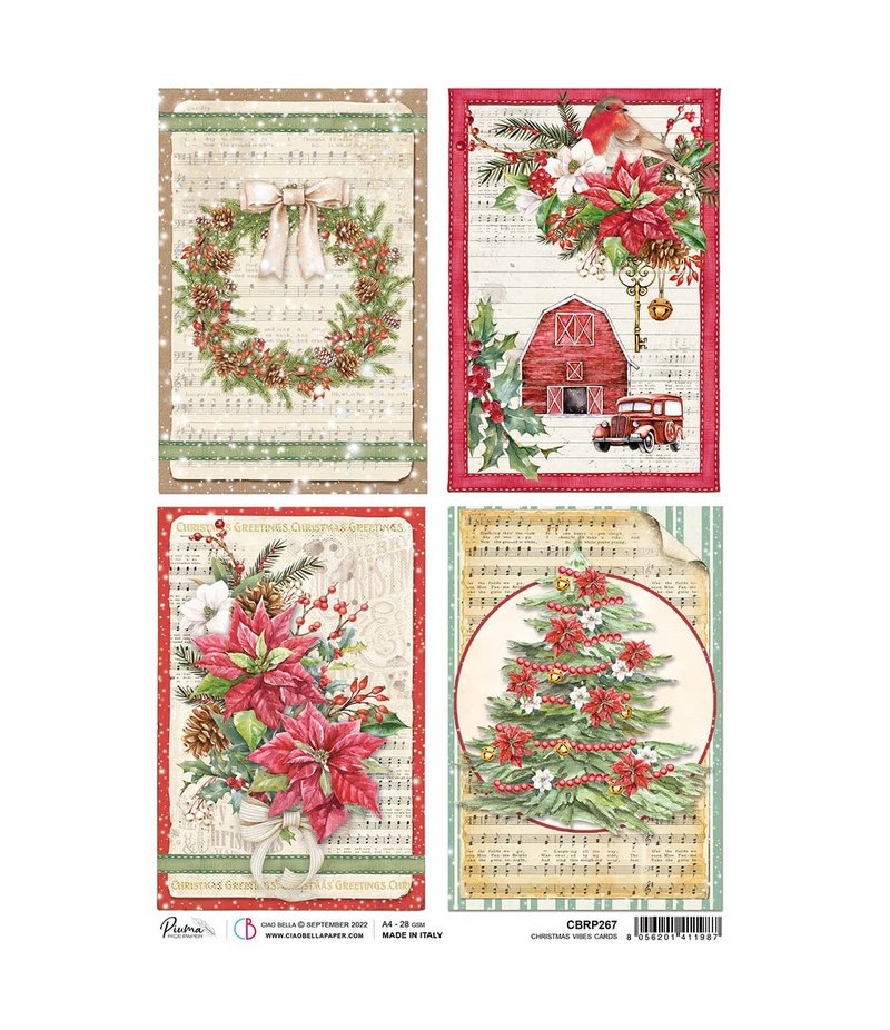 Papier de riz imprimé Ciao Bella 21 x 29.7 cm. Collection CHRISTMAS VIBES.
