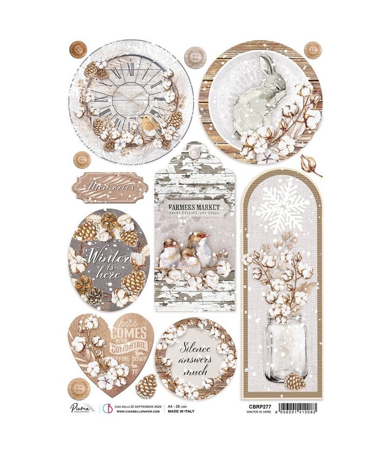 Papier de riz imprimé Ciao Bella 21 x 29.7 cm. Collection COZY MOMENTS.