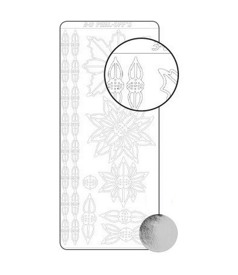 Les stickers peel off or ou argent (certains existent également en d'autres couleurs) sont très pratiques pour la décoration de cartes créatives, d'albums photos, de bijoux ou d'objets déco de toute nature (bois, verre, plastique, etc...)