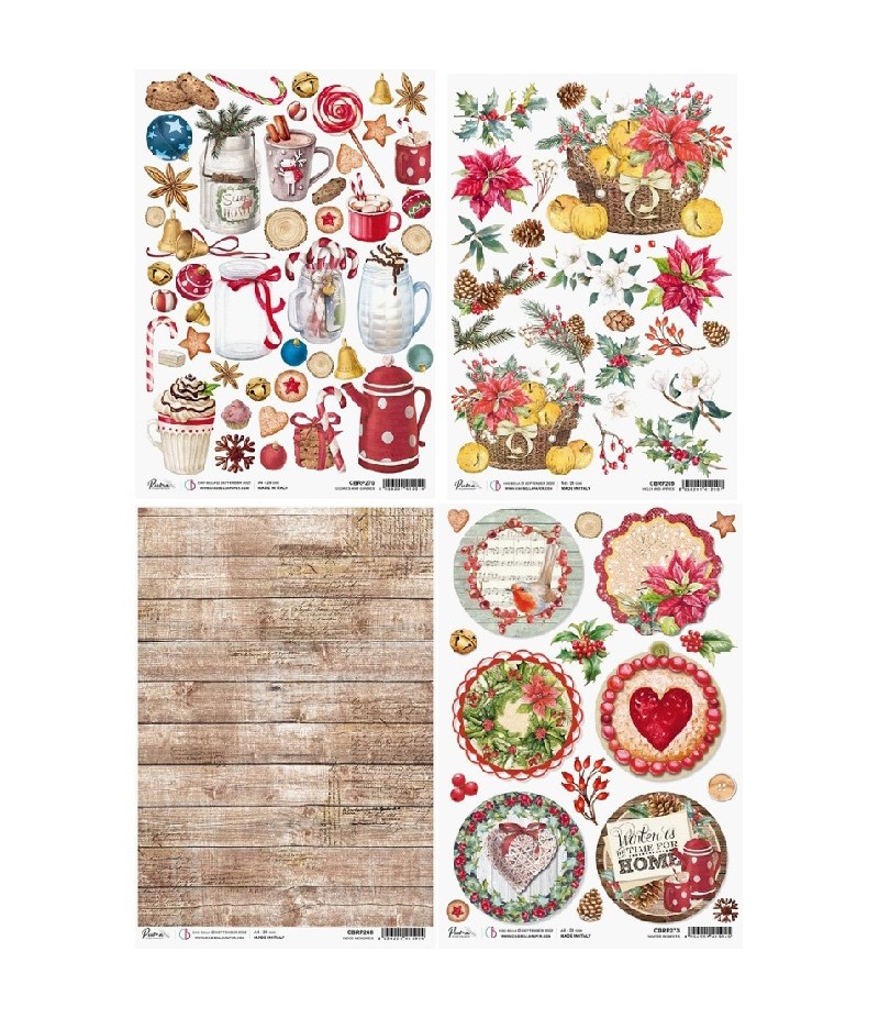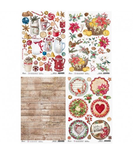 Lot de 4 papiers de riz imprimés A4 - 21 x 29.7 cm - Thème "Noël".