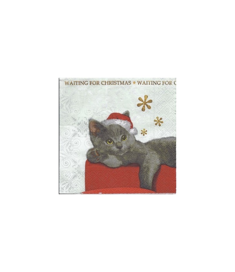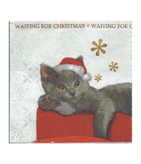 SERVIETTE LE CHAT GRIS DE NOEL