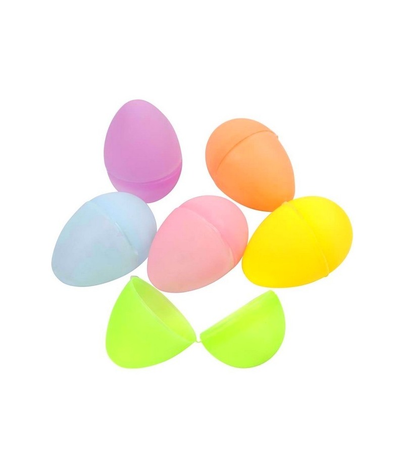 24 Oeufs en plastique en 2 parties. Set de 6 couleurs, 4 pièces de chaque.