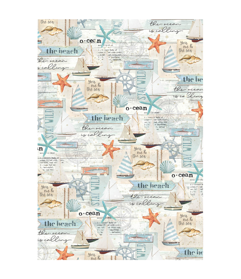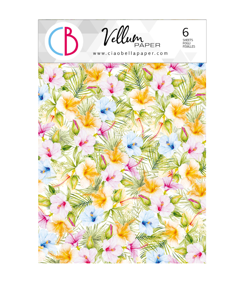 5 Feuilles de papier Vellum imprimé et 1 feuille blanche sans acide. Collection SUMMER BREEZE de CIAO BELLA. CBV005.