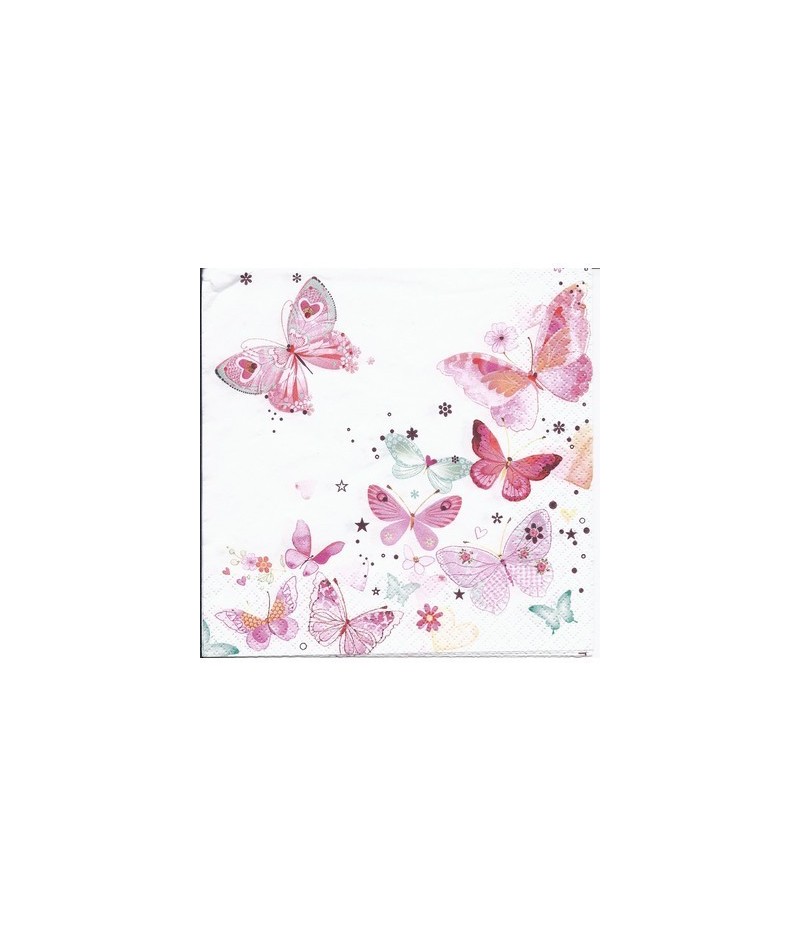 SERVIETTE ENVOLEE DE PAPILLONS ROSES