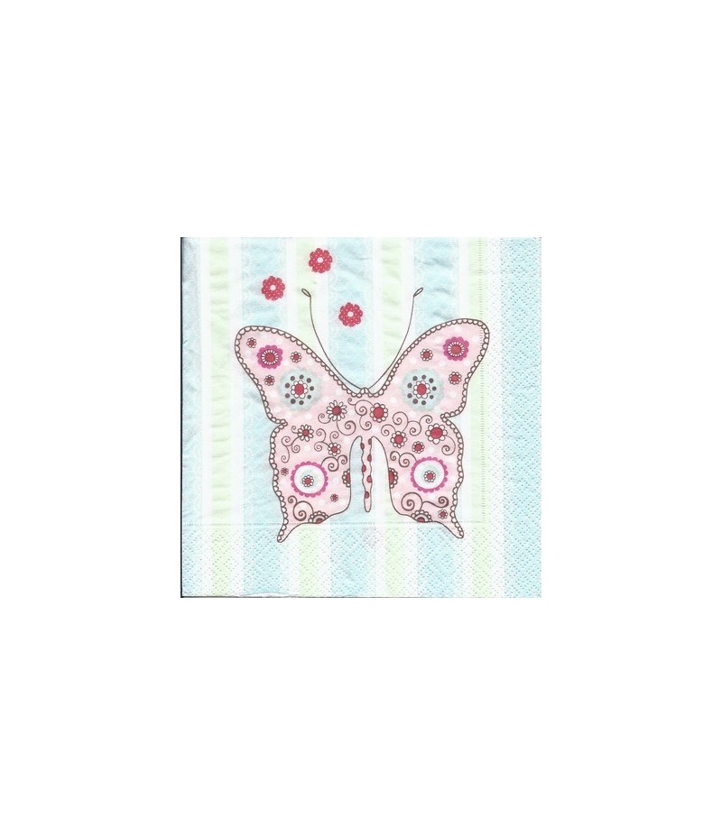 SERVIETTE PAPILLON FOND RAYURES