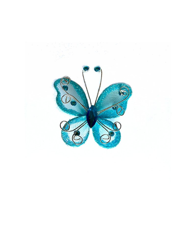 Embellissement papillon avec touches pailletées, fil alu argenté et strass.