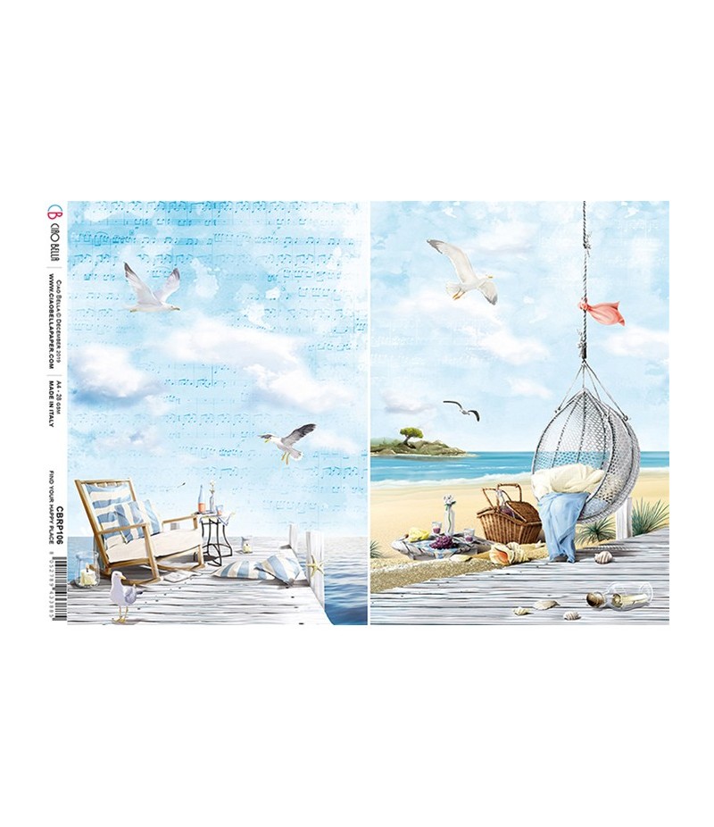 Papier de riz imprimé Ciao Bella 21 x 29.7 cm.