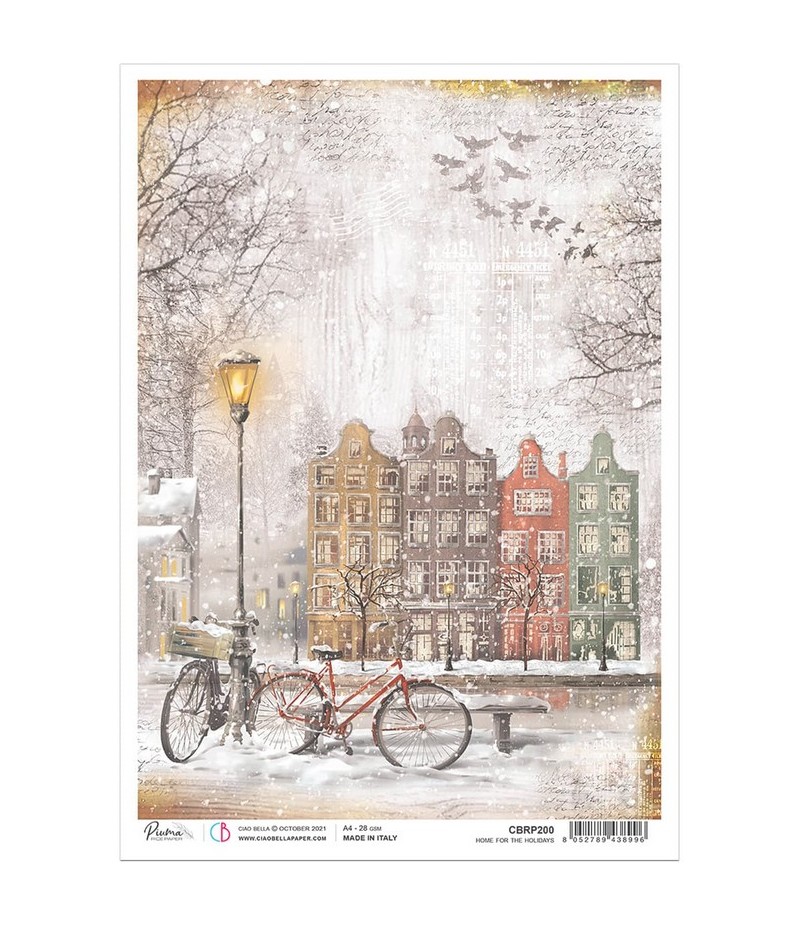 Papier de riz imprimé Ciao Bella 21 x 29.7 cm. Collection MEMORIES OF THE SNOW DAY.