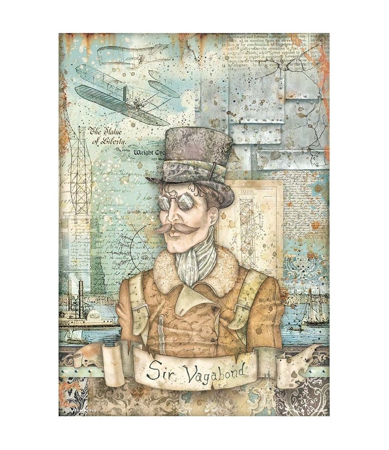 Papier de riz imprimé A4 - 21 x 29.7 cm - Collection SIR VAGABOND AVIATOR de STAMPERIA - DFSA4699