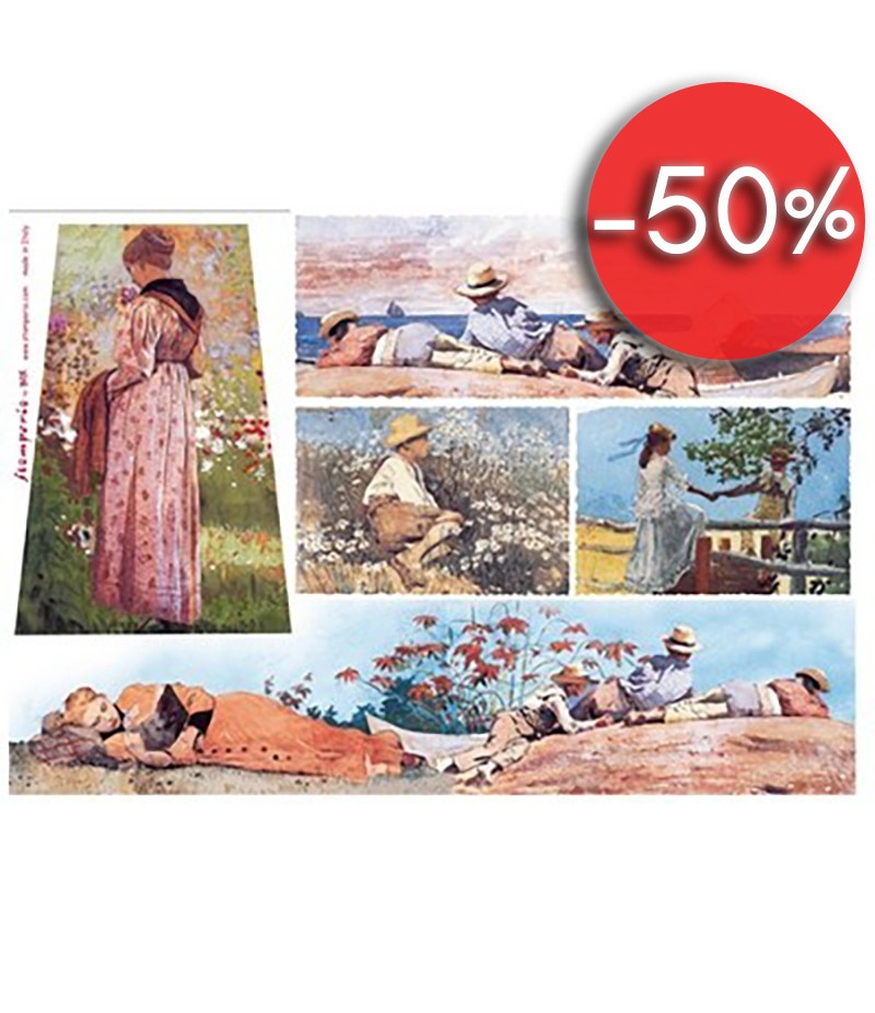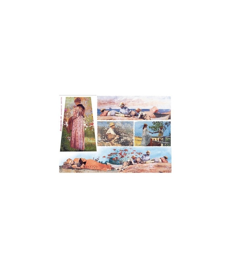 Le papier de riz est un papier texturé, imprimé, utilisé pour la décoration de tous supports (bois, carton, zinc, verre...). Il est plus épais et donc plus résistant qu'une serviette en papier et conserve les qualités de transparence.