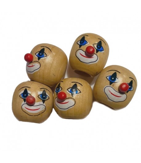 TETES DE CLOWN EN BOIS X5 - 2X2.4CM