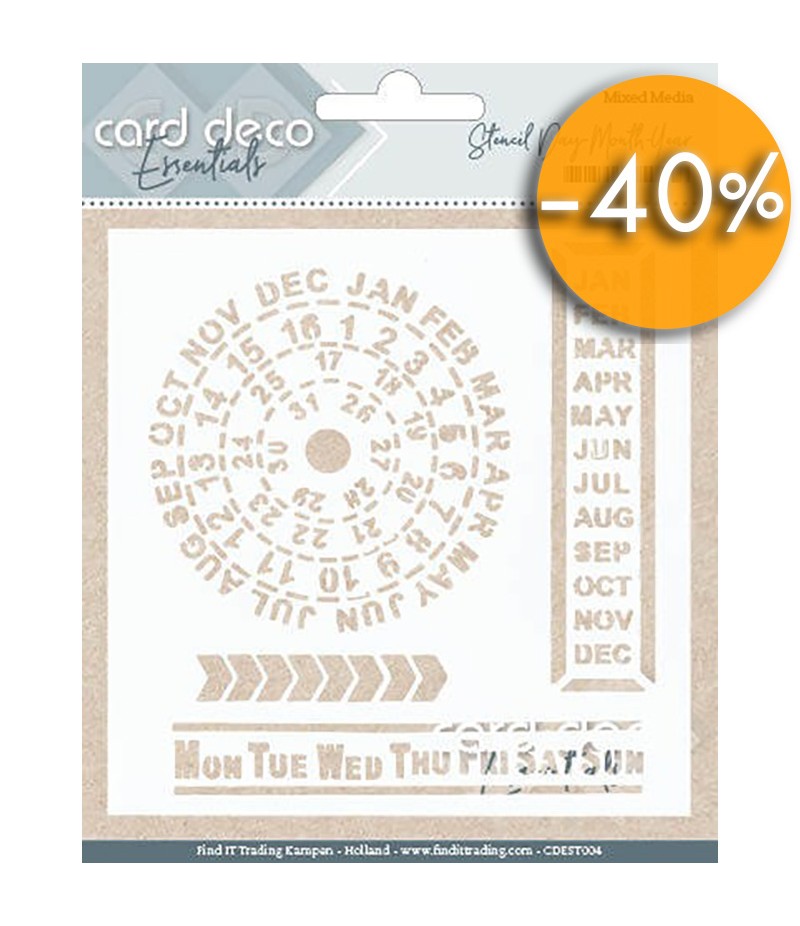 Pochoir en plastique souple très résistant. Stencil Day Month Year - CDEST004