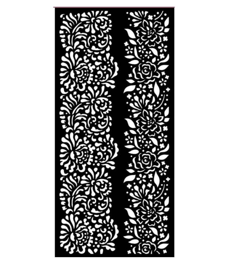 Pochoir en plastique souple très résistant (épaisseur 0.5 mm). Idéal avec les pâtes structures.