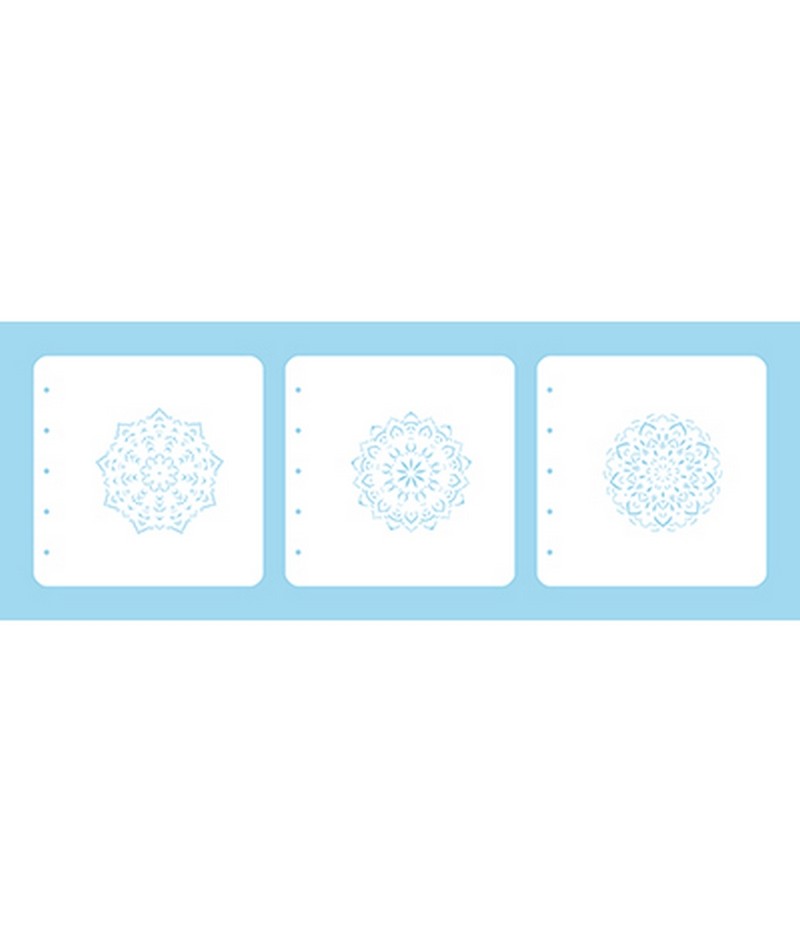 Lot de 3 pochoirs coordonnés (en plastique souple résistant), conçus pour être superposés afin d'obtenir facilement de jolis fonds pour vos projets de carterie par exemple.