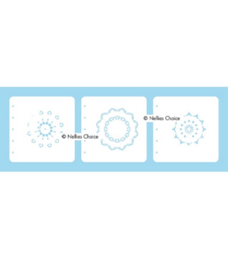 Lot de 3 pochoirs coordonnés (en plastique souple résistant), conçus pour être superposés afin d'obtenir facilement de jolis fonds pour vos projets de carterie par exemple.