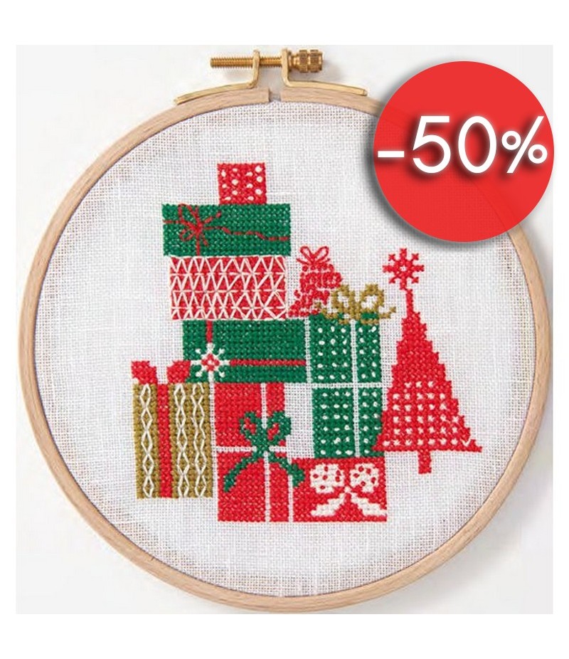 Kit contenant : Coupon Lin 11 fils à broder 100% Coton, aiguille à broder, fils moulinés et graphique avec les instructions.