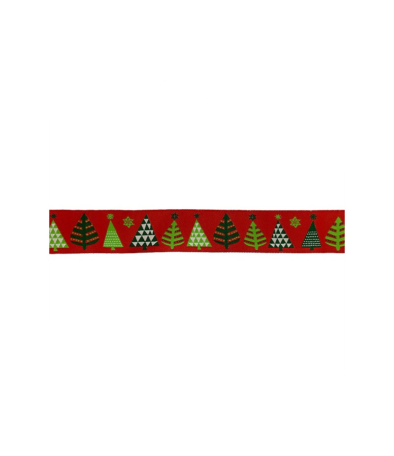RUBAN ROUGE MOTIFS SAPIN 2.8 CM - 1 METRE