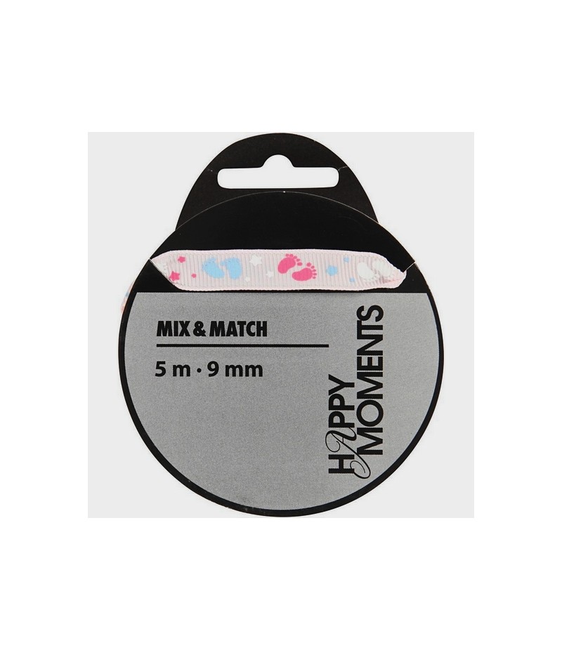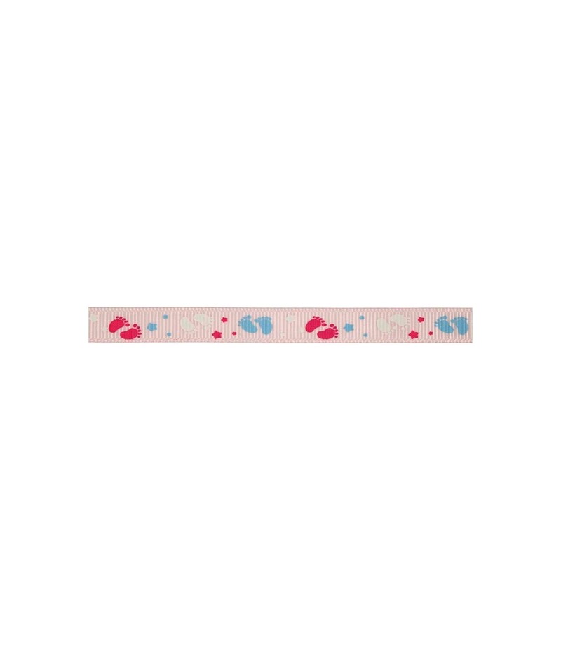 Ruban gros grain avec dessins empreintes de pieds et étoiles.