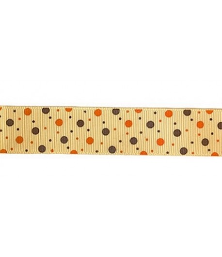 RUBAN JAUNE POIS MARRON ET ORANGE 2.5 CM - 1 METRE