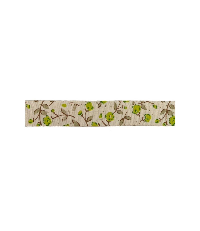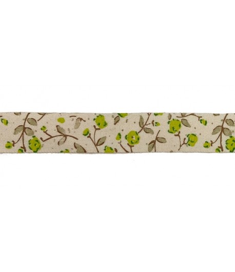 RUBAN LIBERTY FLEURS VERTES 1.5 CM - 1 METRE