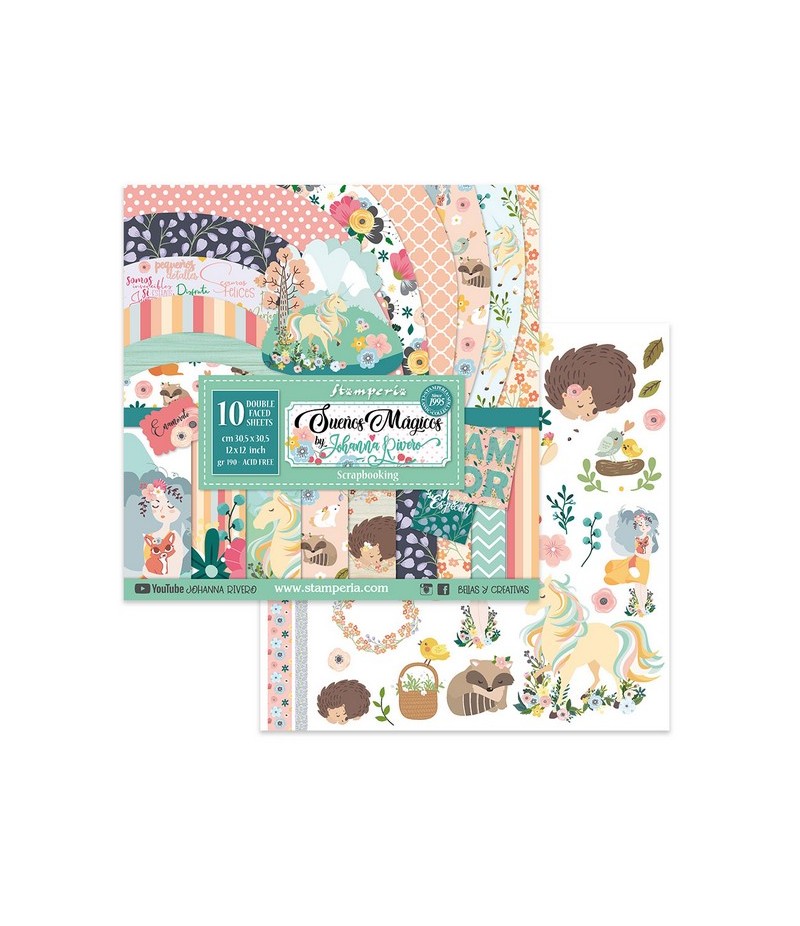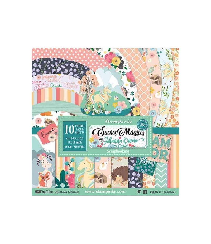 Bloc de 10 feuilles de papier double face (2 motifs) sans acide. By Johanna Rivero.
