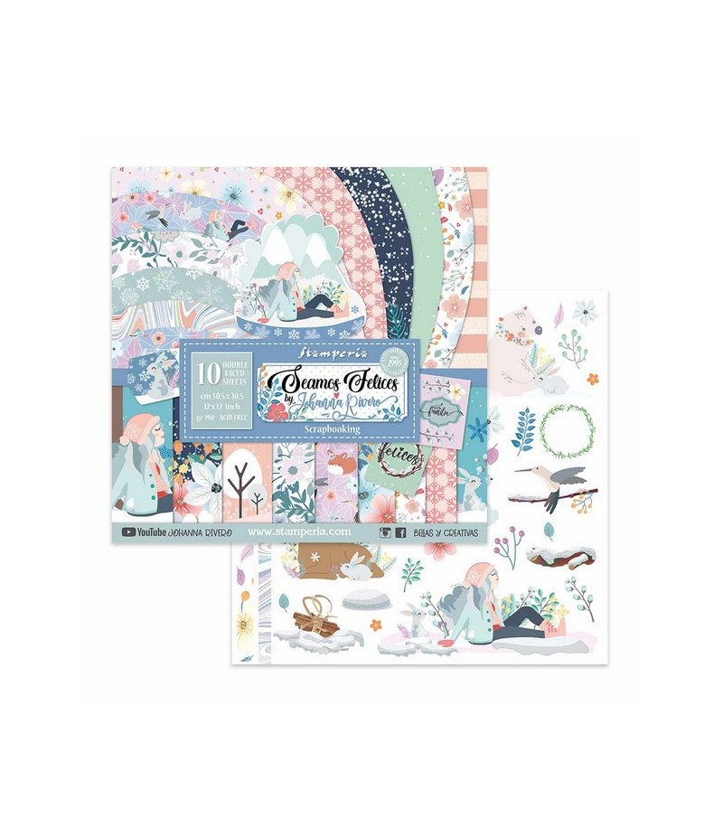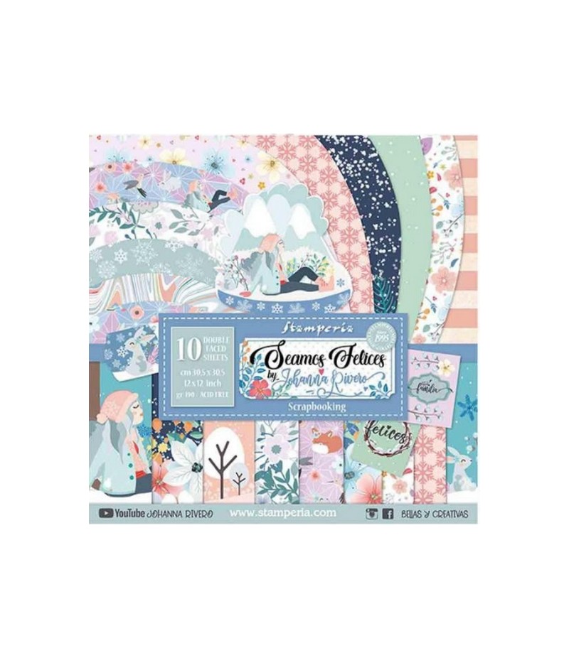 Bloc de 10 feuilles de papier double face (2 motifs) sans acide. By Johanna Rivero.