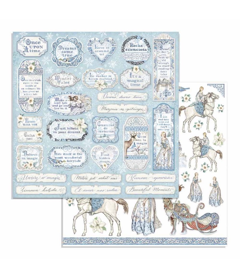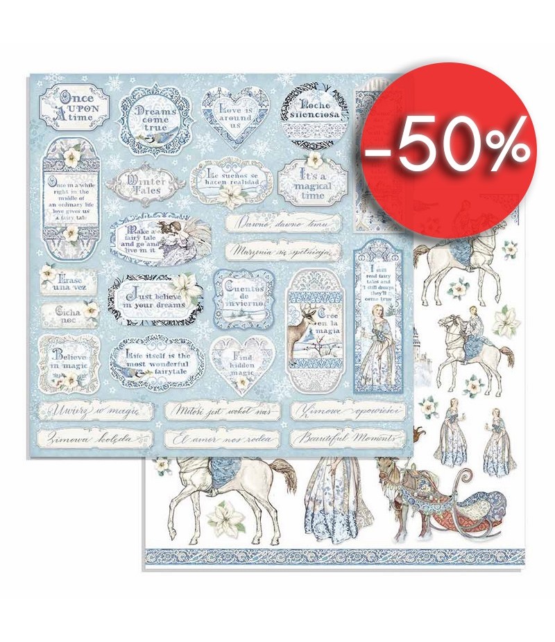 Feuille de papier double face (2 motifs) sans acide. Collection WINTER TALES.