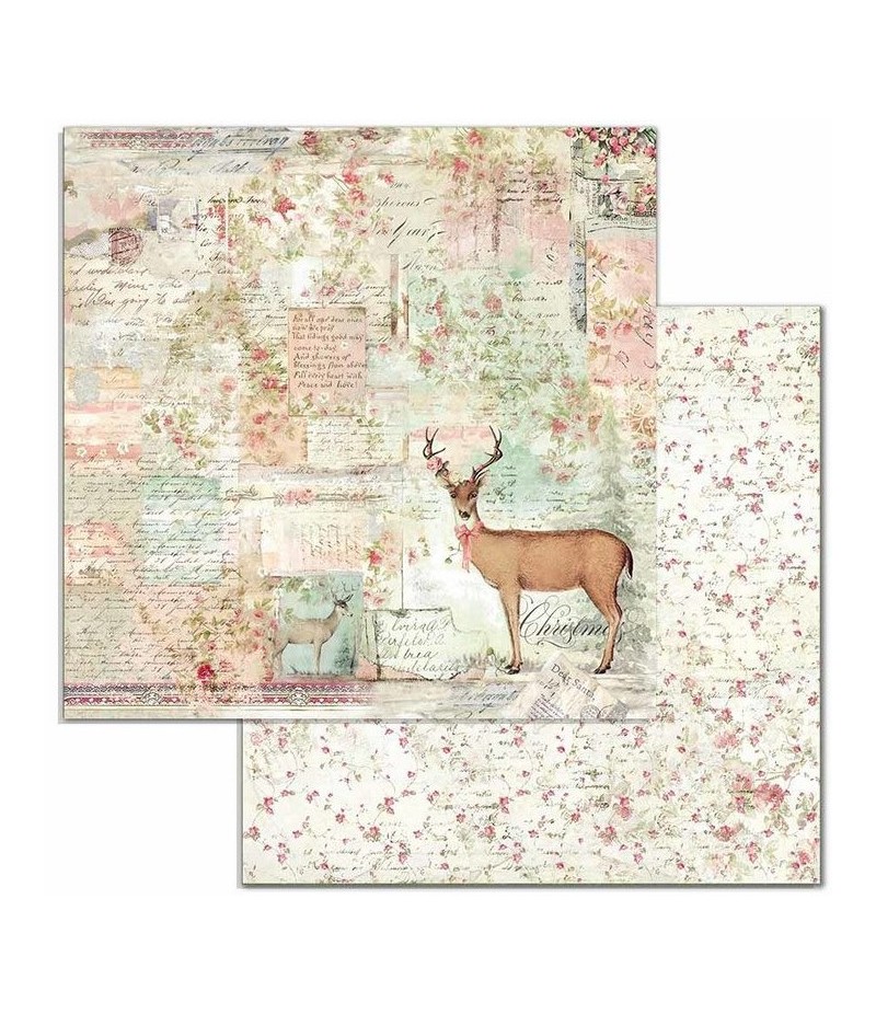 Feuille de papier double face (2 motifs) sans acide. Collection PINK CHRISTMAS.