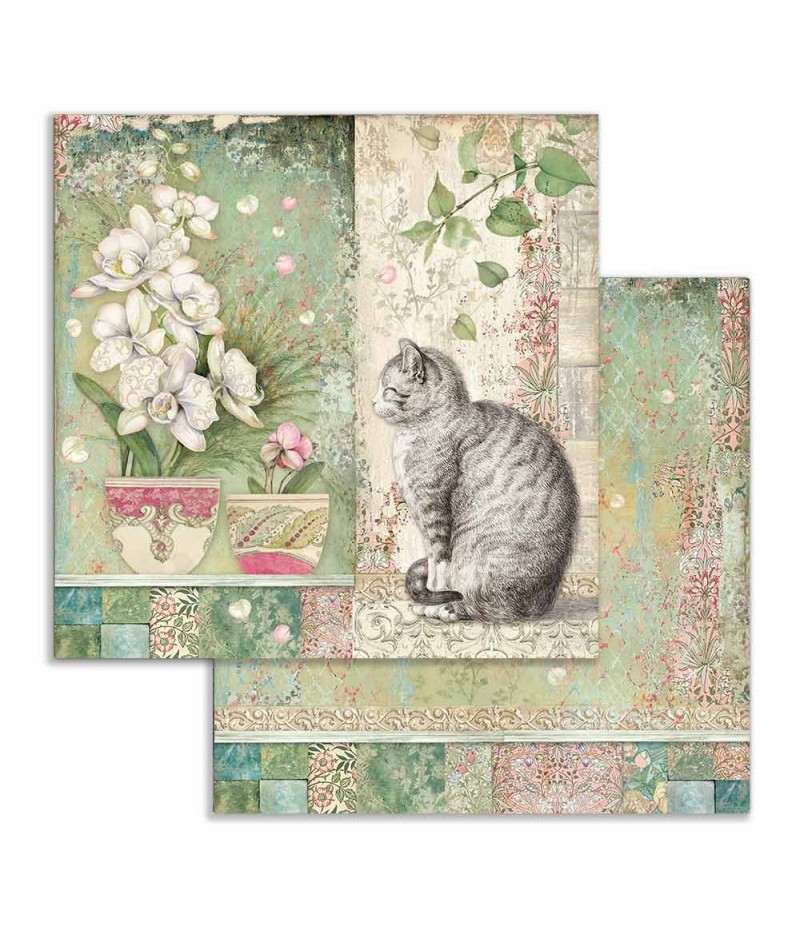 Feuille de papier double face (2 motifs) sans acide. Collection ORCHIDS AND CATS de Stampéria.