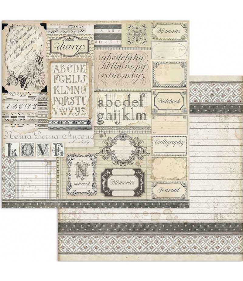 Feuille de papier double face (2 motifs) sans acide. Collection Calligraphy.