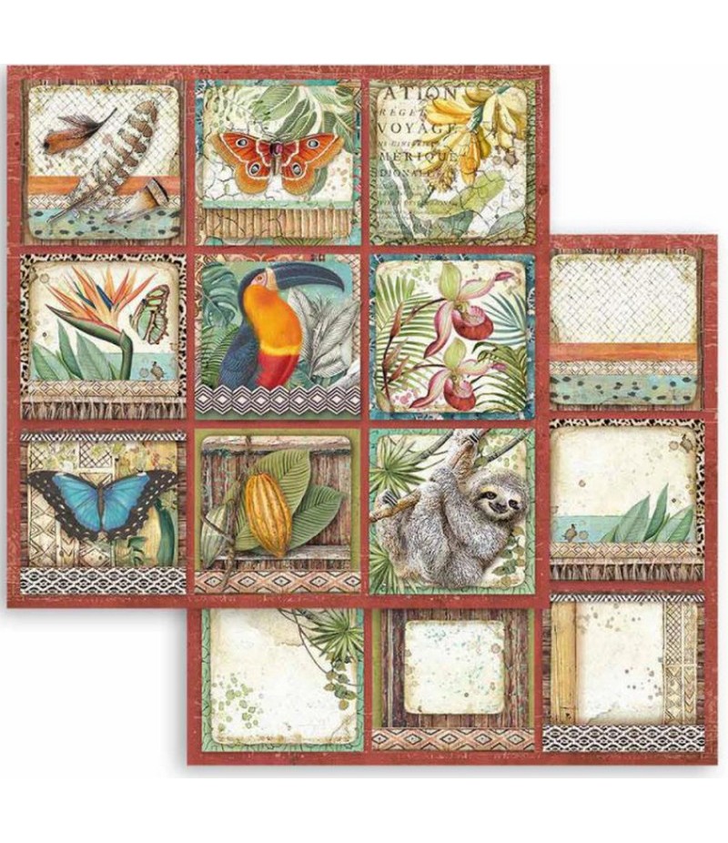 Feuille de papier double face (2 motifs) sans acide. Collection AMAZONIA de STAMPERIA.