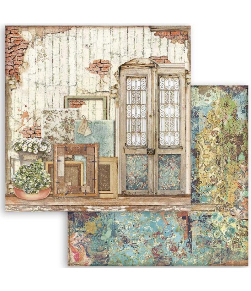 Feuille de papier double face (2 motifs) sans acide. Collection ATELIER DES ARTS de STAMPERIA.