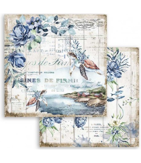 Feuille de papier scrapbooking double face (2 motifs) sans acide. Collection ROMANTIC SEA DREAM de STAMPERIA.